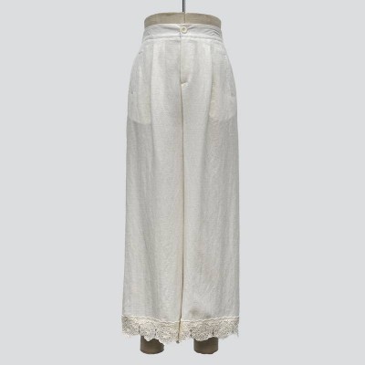 White Lace Trim Wide-Leg Casual Pants