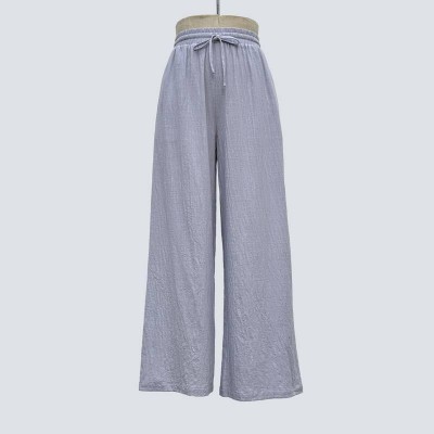 Light Grey Textured Elastic Waist Drawstring Wide-leg Casual Pants