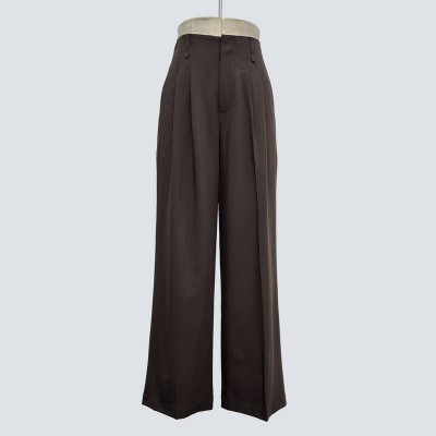 Elegant Dark Brown Wide-Leg Suit Pants High-Waisted Casual Trousers with Drape