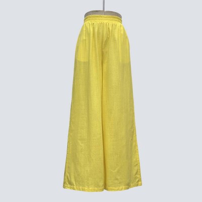 Simple Solid Color Elastic Waist Yellow Wide-Leg Pants