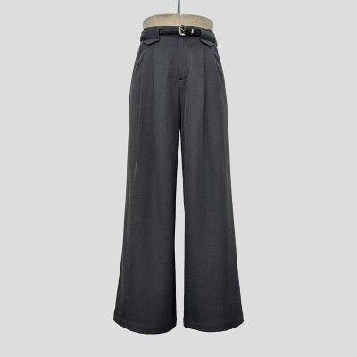 Simple Versatile Gray Wide-Leg Suit Pants with Belt Slimming Drape Long Pants