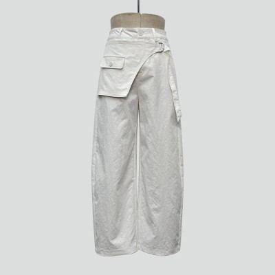 White Design Waist Decor Wide-leg Casual Pants Loose Long Bottoms