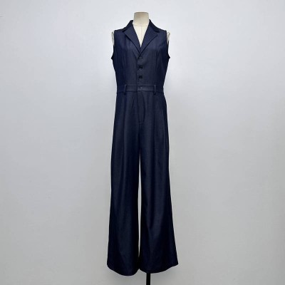 Sleeveless Suit Collar Waist Cinched Wide-Leg Jumpsuit