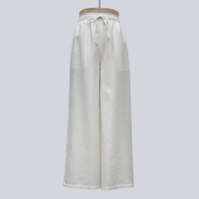 Simple White Drawstring Wide-leg Casual Pants