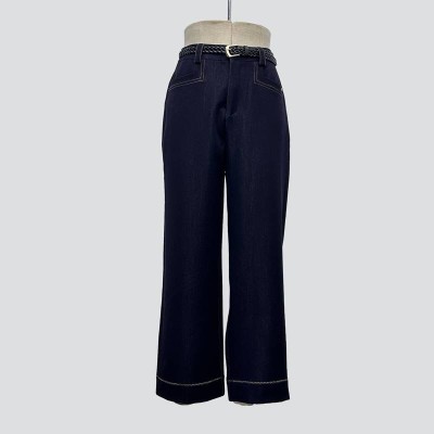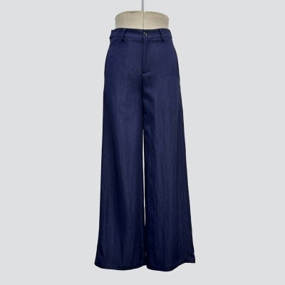 Navy Blue Drape Wide-Leg Pants Casual Commuter Slim Long Pants