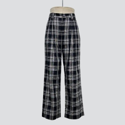 Vintage Black and White Plaid Wide-leg Pants High Waist Slim Casual Trousers