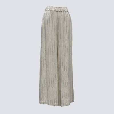 Vertical Striped Elastic Waist Linen Wide-Leg Pants