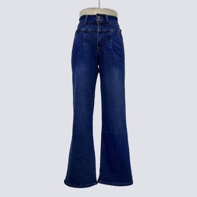 Dark Blue High-Waisted Wide-Leg Jeans Loose Slimming Vintage Denim Trousers