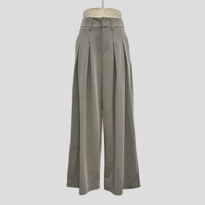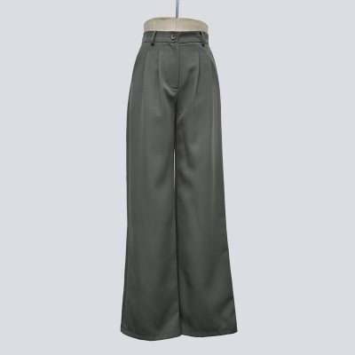 High-quality drape gray-green wide-leg pants