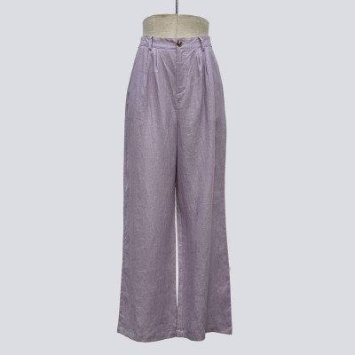 Light Purple Linen Wide-leg Casual Pants
