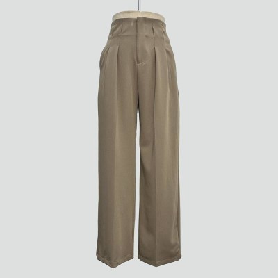 High Waist Wide-Leg Suit Pants Khaki Casual Office Trousers
