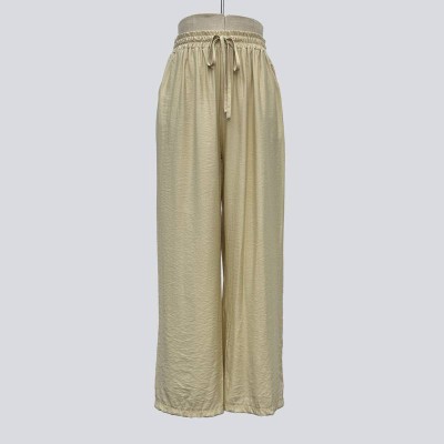 Elegant Off-white Elastic Waist Drawstring Wide-leg Pants Loose Casual Long Trousers