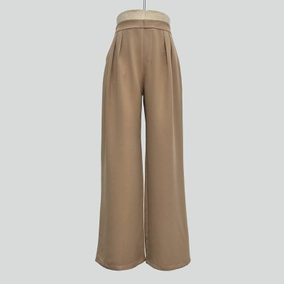 Simple Khaki High-Waisted Wide-Leg Pants Loose Casual Long Trousers with Drape