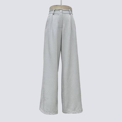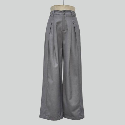 High-waisted Grey Wide-leg Pants Loose Suit Style Trousers