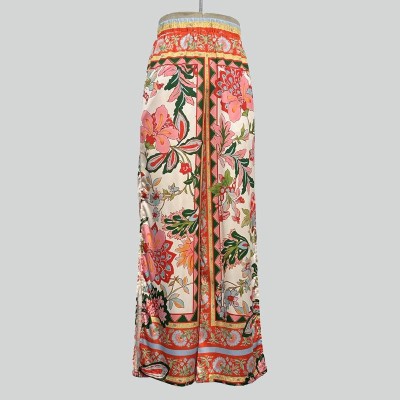 Vintage Floral Print High Waist Wide Leg Pants Loose Drape Casual Trousers