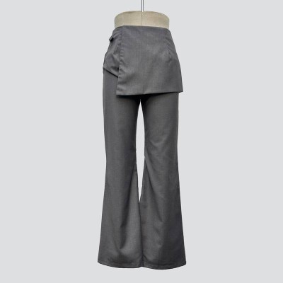 Grey Skirt-style Fake Two-piece Wide-leg Casual Pants