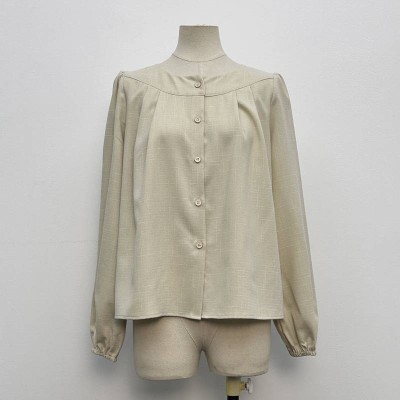 Simple Stand Collar Long-sleeve Shirt Elegant Solid Color Loose Commute Top