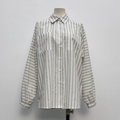 Vintage Striped Lapel Long Sleeve Shirt Loose Casual Versatile Blouse