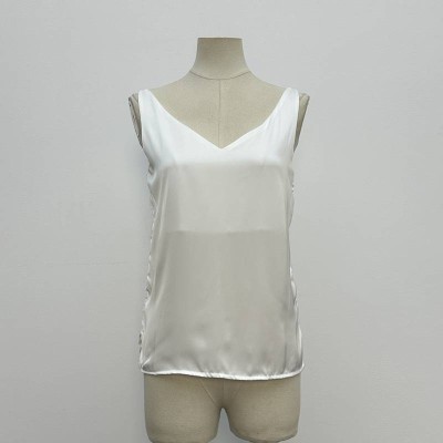 Minimalist V-neck Sleeveless Waist-cinching Top Elegant Commute Irregular Hem White Top