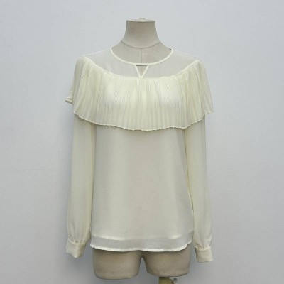 Elegant Hollow Neck Ruffled Trim Long Sleeve Chiffon Blouse