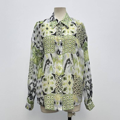 Vintage Geometric Print Lapel Long Sleeve Shirt Loose Casual Chiffon Top