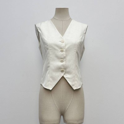 Simple V-neck Single-breasted Sleeveless Vest Top