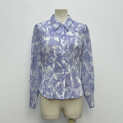 Elegant Printed Lapel Long Sleeve Shirt Commuter Satin Blouse