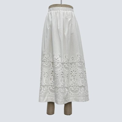 White Hollow Embroidered Elastic Waist Midi Skirt