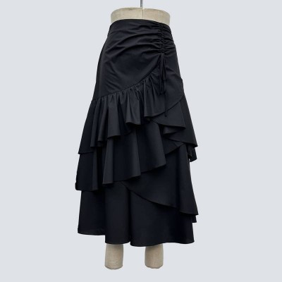 Fashion Irregular Ruffle Pleated Design Black Midi Skirt