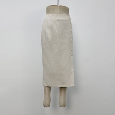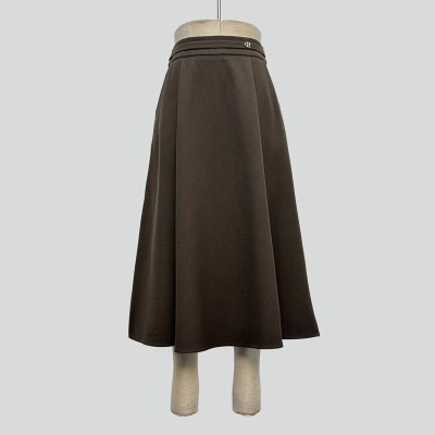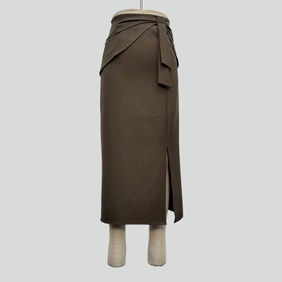 Elegant Waist-slit Midi Skirt Minimalist Commuter Brown Pencil Skirt