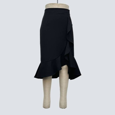 Black Irregular Ruffle High-waisted Midi Skirt Commuter Slim Fit Hip-hugging Fishtail Skirt
