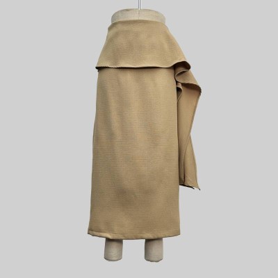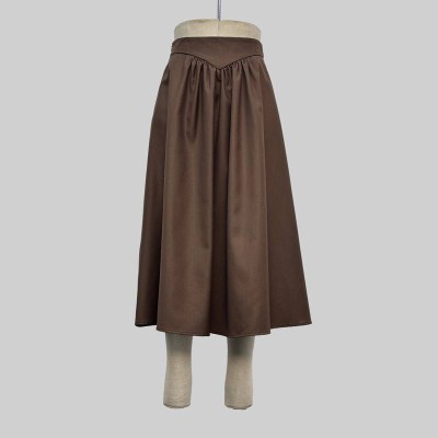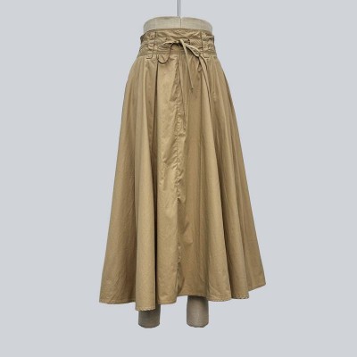 Khaki High Waist Drawstring Midi Skirt Vintage Commuter A-line Skirt