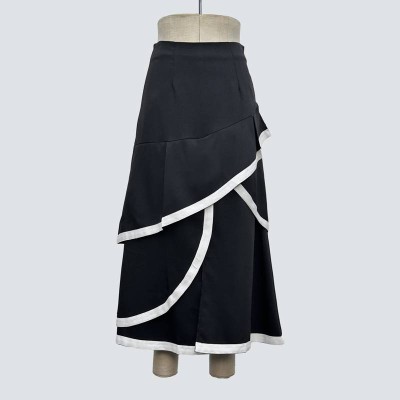 Black Ruffle Irregular Design High-waisted Midi Skirt