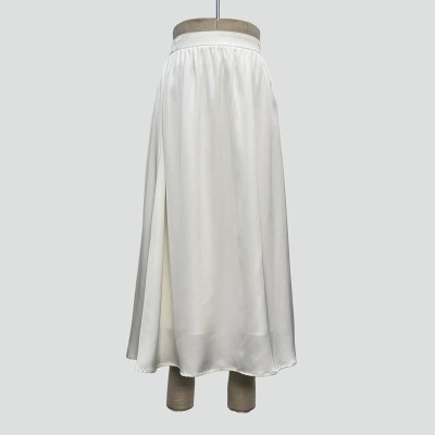 Elegant Satin White High-waisted Midi Skirt Draped Commuter Skirt