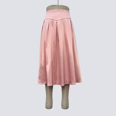 Elegant Pink High-waist Pleated Midi Skirt