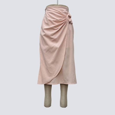 Elegant Knotted Pink Midi Skirt Temperament Drape Slim Skirt