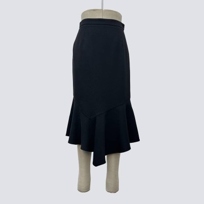 Black Irregular Fishtail Midi Skirt High Waist Slimming Commuter Wrap Skirt