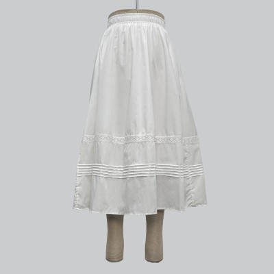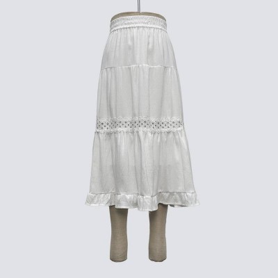 White Elastic Waist Mid-Length Skirt with Lace Patchwork