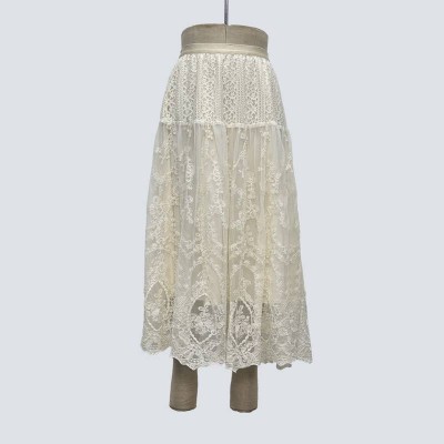 French Elegant Lace Embroidered High-waisted Midi Skirt Fairy Mesh Slim Skirt