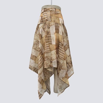 Vintage Patchwork Irregular Hem Midi Skirt