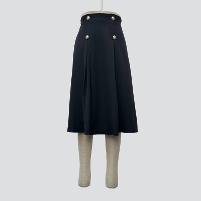 Black High-waist Button-decorated Pleated Midi Skirt