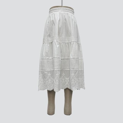 White Embroidered Lace Patchwork Elastic Waist Midi Skirt