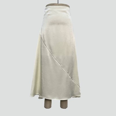 Off-white Satin Asymmetrical Design Midi Skirt