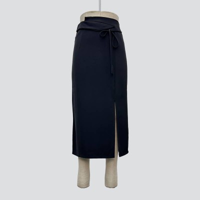 Black Tie Split Midi Skirt