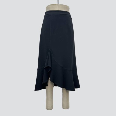 Black Irregular Ruffle Design Midi Skirt