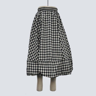 Vintage Black & White Gingham Mid-length Skirt Elastic Waist Bud Skirt
