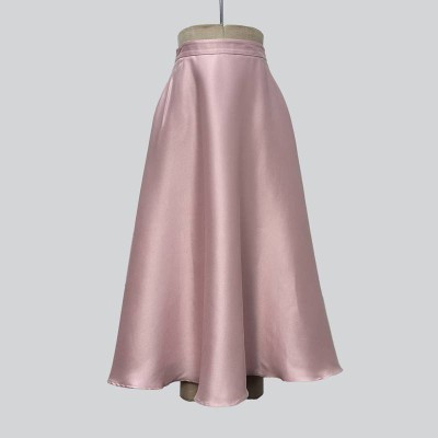 Elegant Satin Pink Midi Skirt High Waist Slimming Flowy Mid-length Skirt