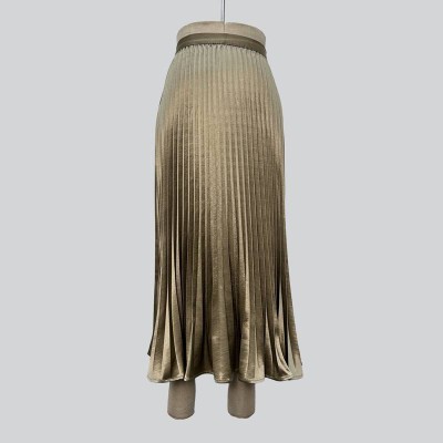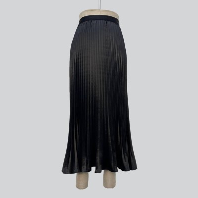 Glossy Satin Pleated Midi Skirt Draped Slim Fit Temperament Skirt