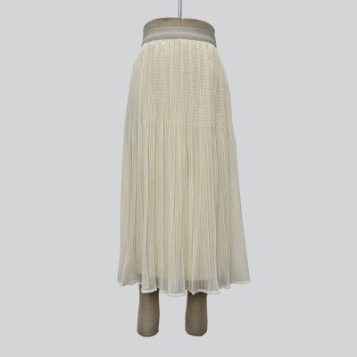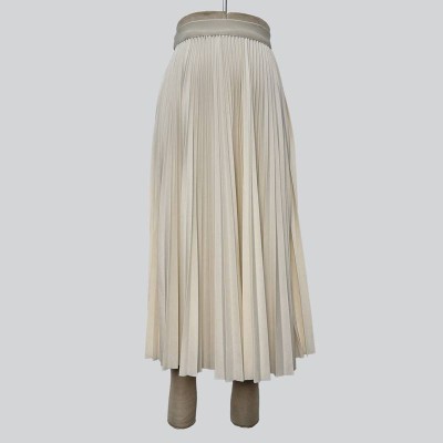 Elegant Off-white Pleated Midi Skirt High Waist Slimming Skirt