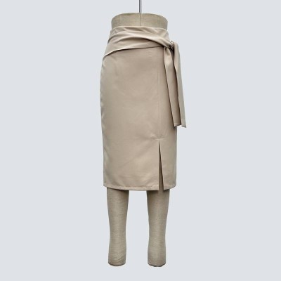 Elegant Irregular Hem Tie Design Off-white Midi Skirt